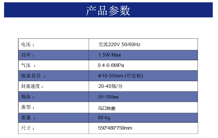 適用產(chǎn)品直徑:瓶型直徑40~110mm